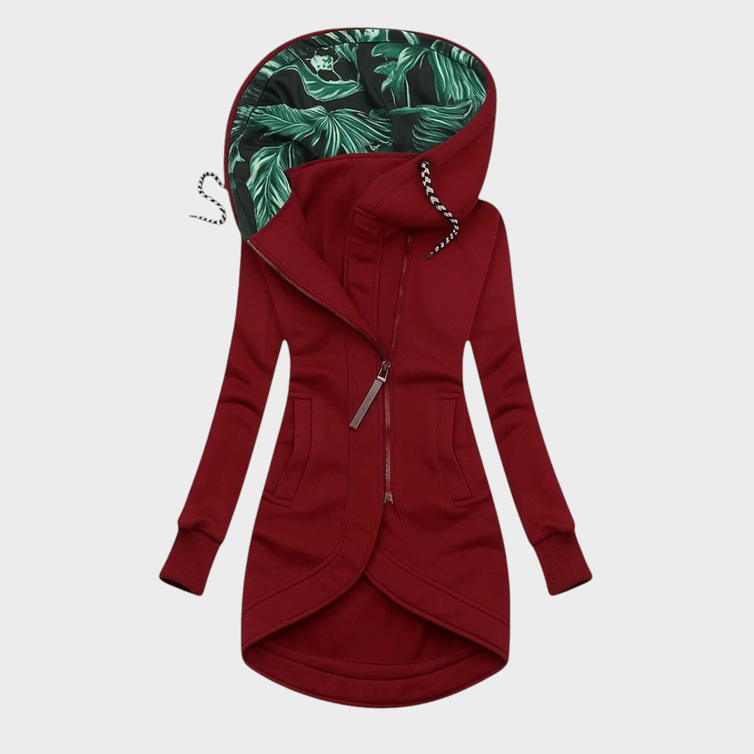 - Špeciálny dizajn – prekrížený strih a kapucňa s elegantným detailom.