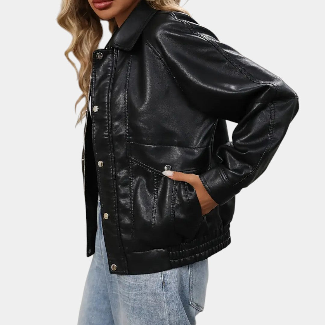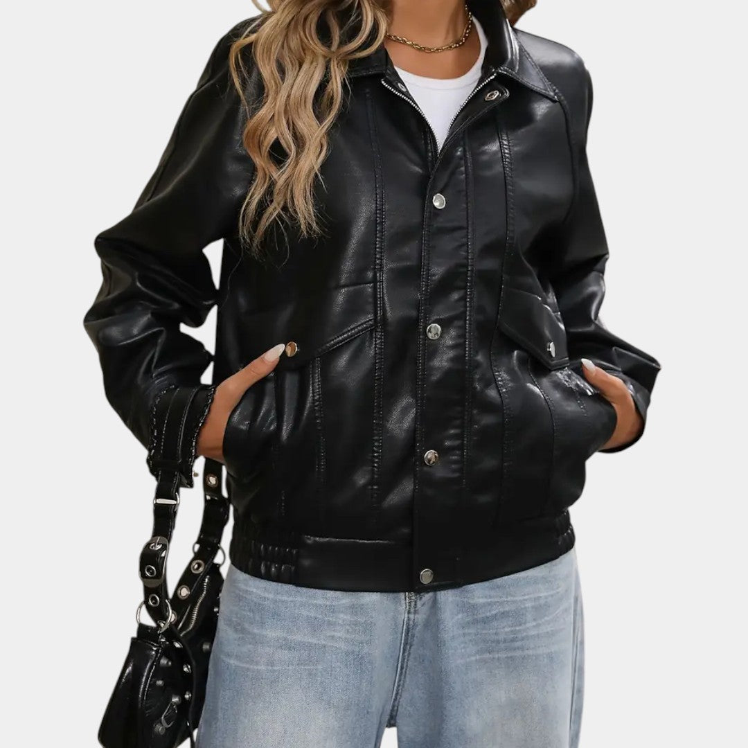Táto bunda z ekokože spája moderný vzhľad s praktickosťou, vďaka čomu je ideálnou voľbou pre tých, ktorí hľadajú univerzálny a štýlový kúsok. Jej štruktúrovaný dizajn spolu s funkčnými detailmi prináša eleganciu bez námahy a pohodlie na každý deň. Perfektná na rôzne príležitosti – od ležérneho outfitu s džínsami až po sofistikovanejšie kombinácie. Nadčasový základ, ktorý nikdy nevyjde z módy.