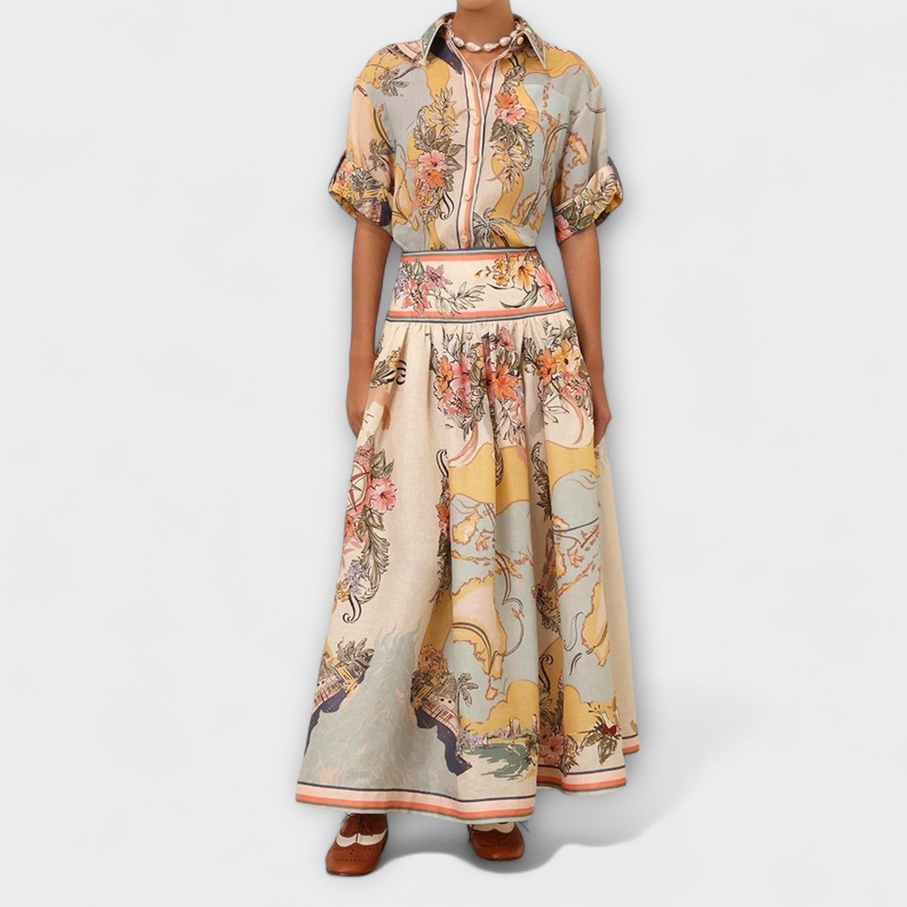 Tento vintage sukňa s širokým pásom v A-linii kombinuje nadčasovú eleganciu s vintage šarmom. Navrhnutá na zvýraznenie pásu a vytvorenie lichotivej siluety, široký pás zvýrazňuje postavu v tvare presýpacích hodín. Strih v A-linii je elegantný a plynulý, dodáva každému outfitu dynamický a klasický nádych. Od ležérneho denných lookov po elegantné večerné outfity, táto sukňa je všestranným must-have pre každú garderóbu.