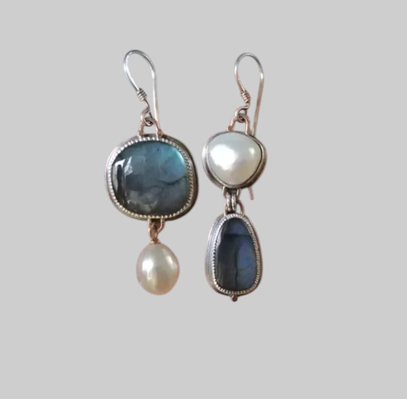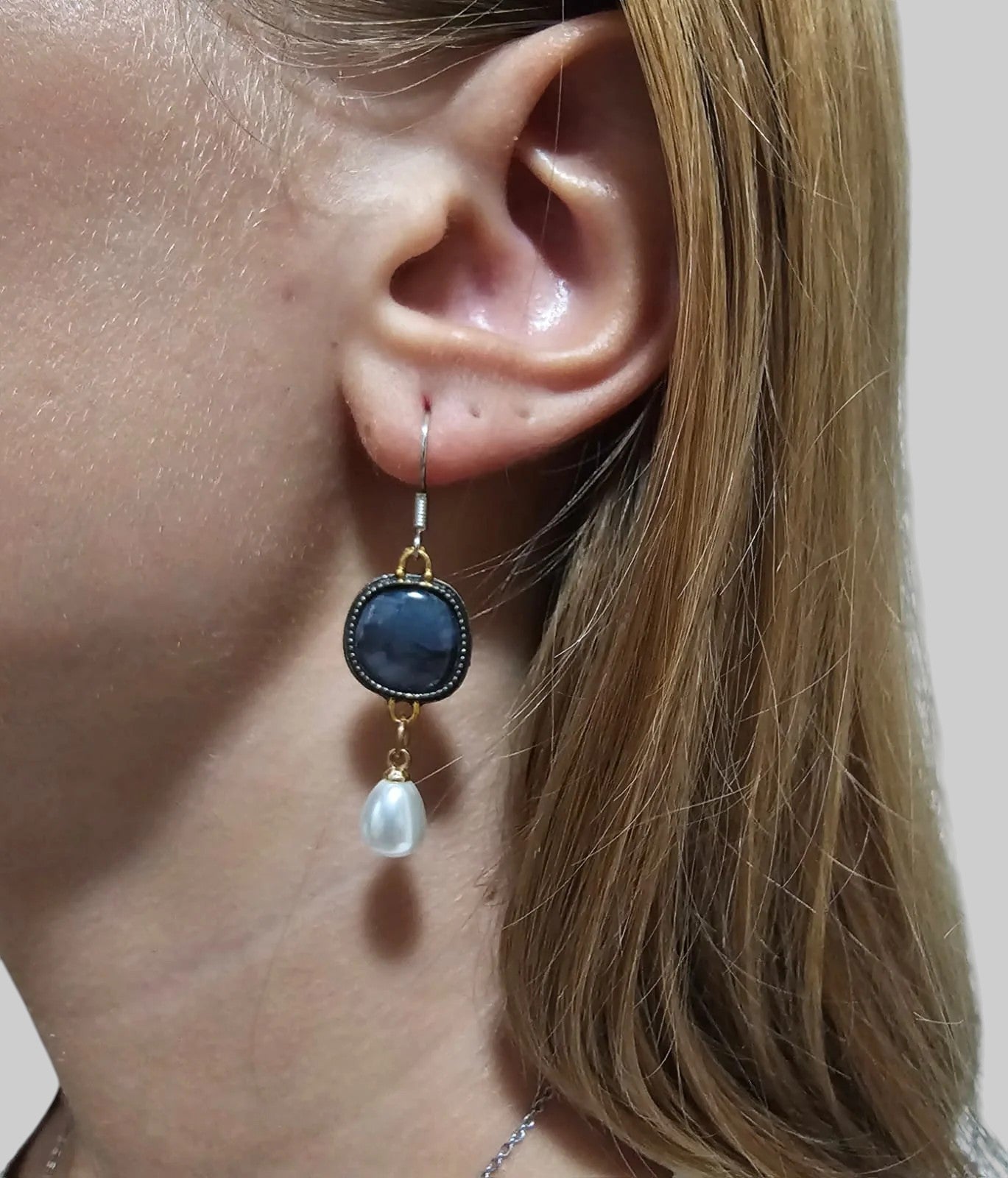 Oživte svoj vzhľad elegantným vintage kúskom. Tieto náušnice Edita spájajú jemnú krásu modrého kameňa s nadčasovou eleganciou perly, čím vytvárajú dokonalú rovnováhu medzi klasickým a moderným štýlom.